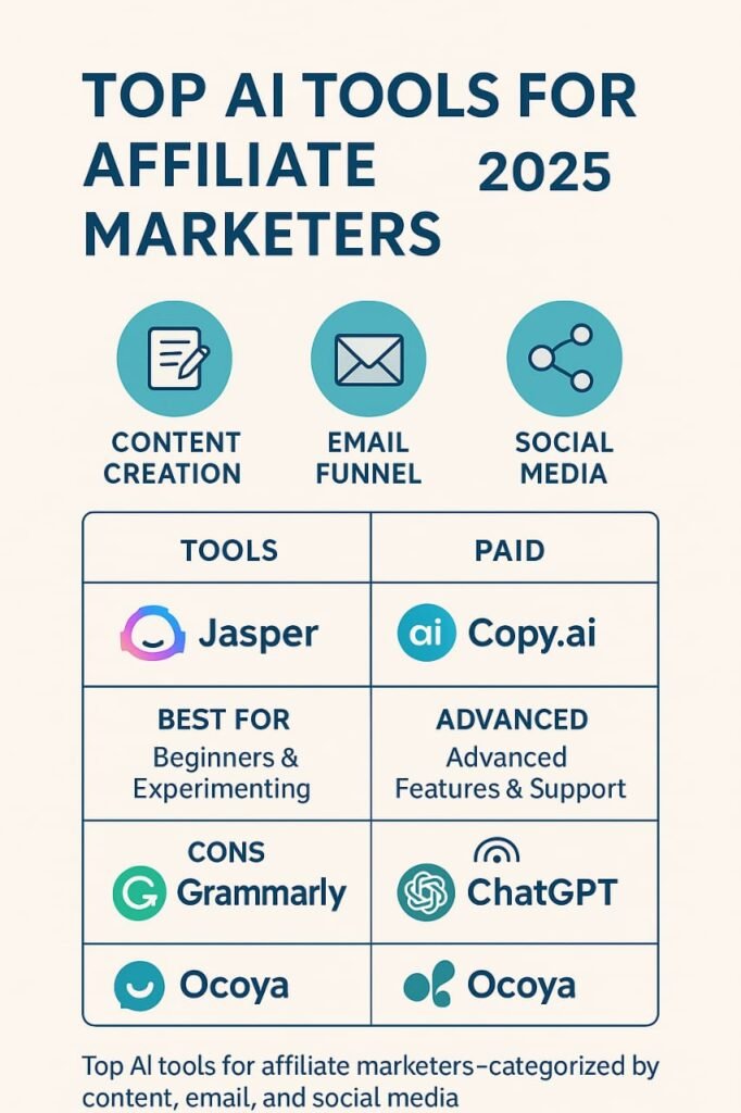 Discover the top AI tools for affiliate marketers in 2025. Explore free & paid options to boost content, traffic, and conversions fast.